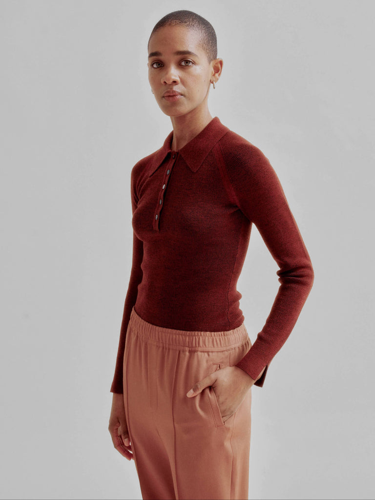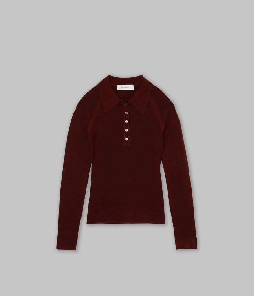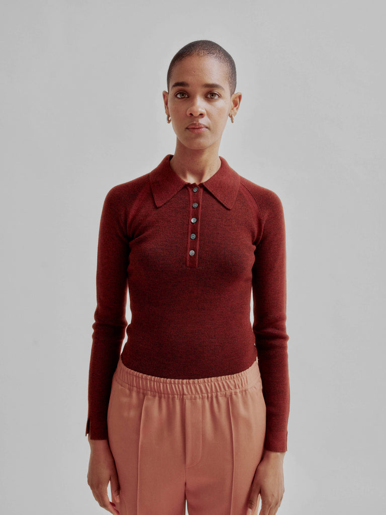 Sayaka Davis Combo Ribbed Polo in Rust x Navy